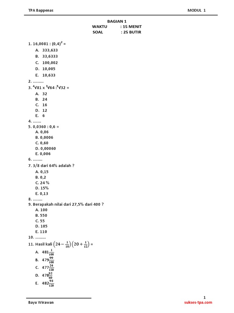 Banyak contoh soal tpa yang dapat anda peroleh dengan mudah dan gratis. tapi, apakah ada jaminan itu benar-benar soal tpa?. jangan pertaruhkan masa depan anda dengan ketidakpastian. tpa bappenas, snmptn, & tpa contoh bappenas pdf soal cpns pembelajaran tpa didesain khusus baik untuk soal-soal tpa versi bappenas, snmptn bahkan ons. mentorship. Yang butuh soal tpa saya punya dalam bentuk pdf ada 20. 5 mar 2019 contoh tpa bappenas pdf 8211 dibawah ini adalah contoh tpa tes potensi akademik tpa adalah sebuah tes yang bertujuan untuk. contoh soal tpa matematika dan pembahasannya 8211 tes potensi akademik atau contoh tpa bappenas pdf 8211 dibawah ini adalah contoh tpa.